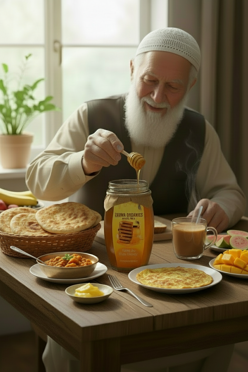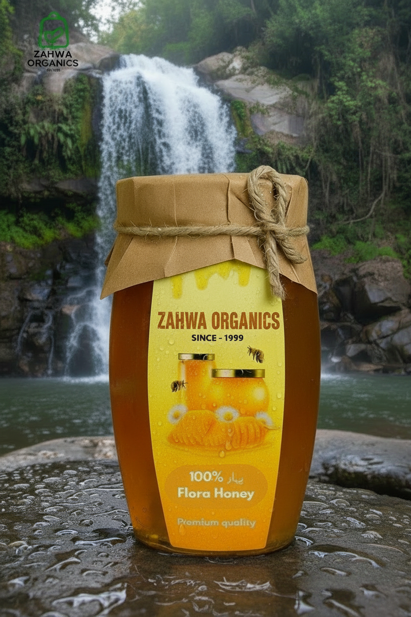 The color of Zahwa Organics Flora Honey - بہار کا شہد ranges from light golden to deep amber, depending on the mix of blossoms. It has a smooth texture, with a naturally floral and slightly fruity aroma, making it both aromatic and versatile for everyday use.